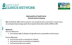 Aim: By 9/30/25, RRHC will increase the rate of patients who receive their cervical cancer screening by 10 percentage points from baseline (December 2024) of 49% to 59%.